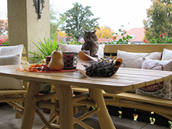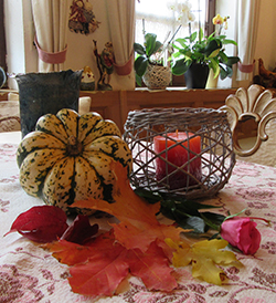 Rustikale Möbel mit vielen Holzverzierungen, wunderbar arrangierte Dekorationen, den Jahreszeiten entsprechend runden das Essemble unseres Gästeraumes ab.